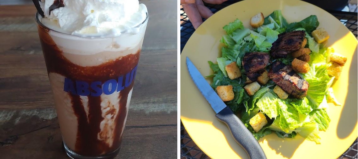 Definitely try the steak and cheese sandwich for its rich flavor. Pair it with their poutine fries for an indulgent treat. If you’re feeling adventurous, don’t miss the coconut shrimp with the Pina colada sauce.